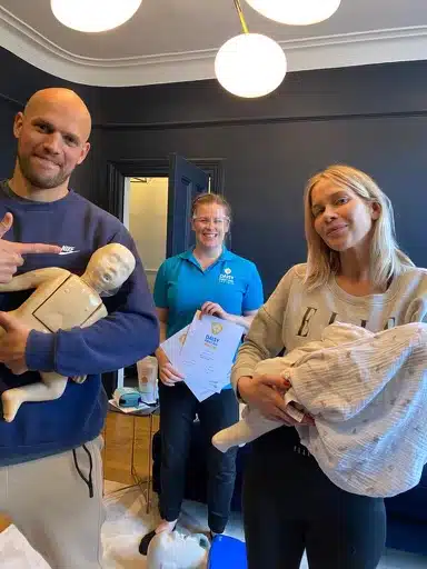 The lovely Coronation Street’s Shayne Ward and Hollyoaks actress partner Sophie Austin are expecting their first baby and booked in our lovely Daisy First Aid trainer Nina to come and provide a parents first aid class at home.